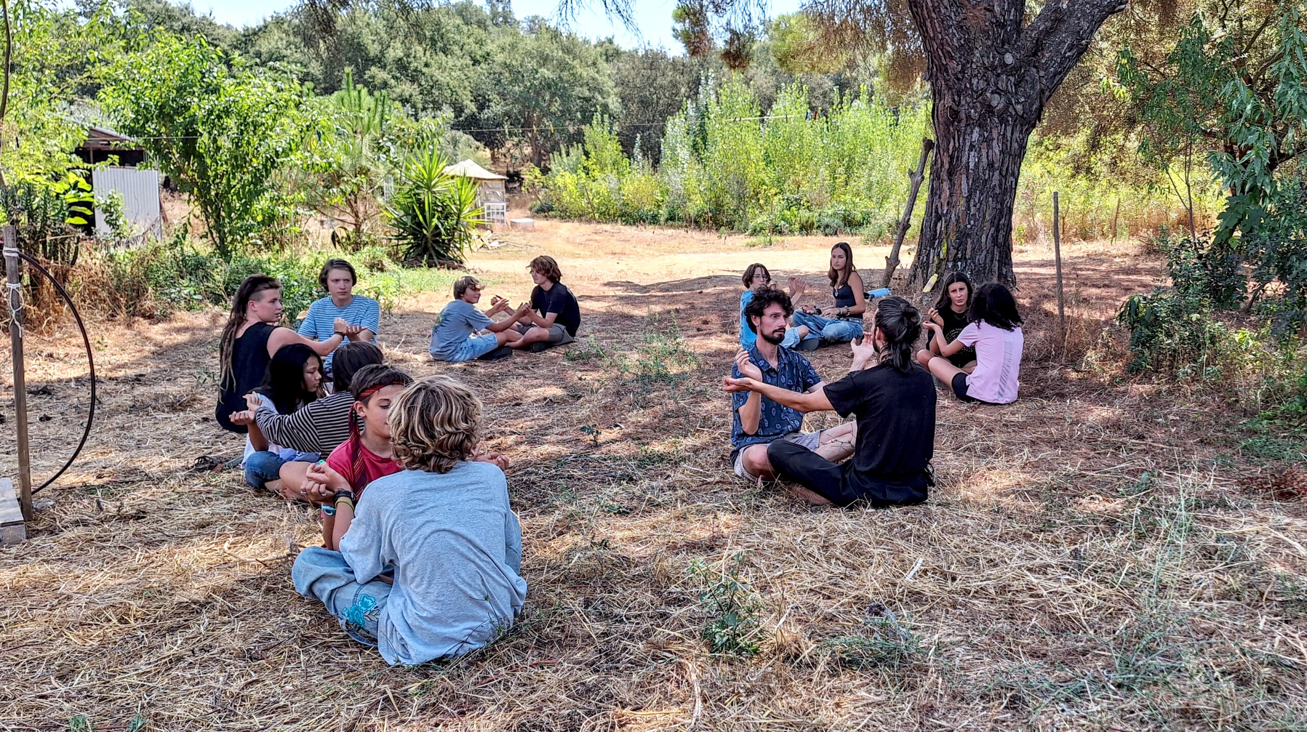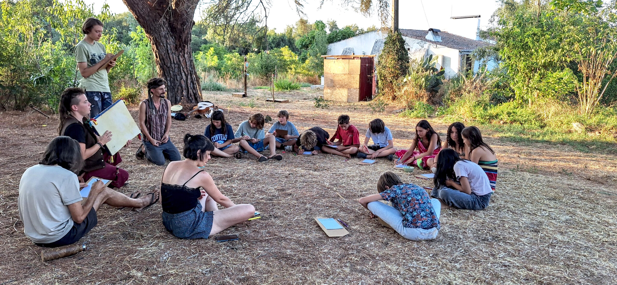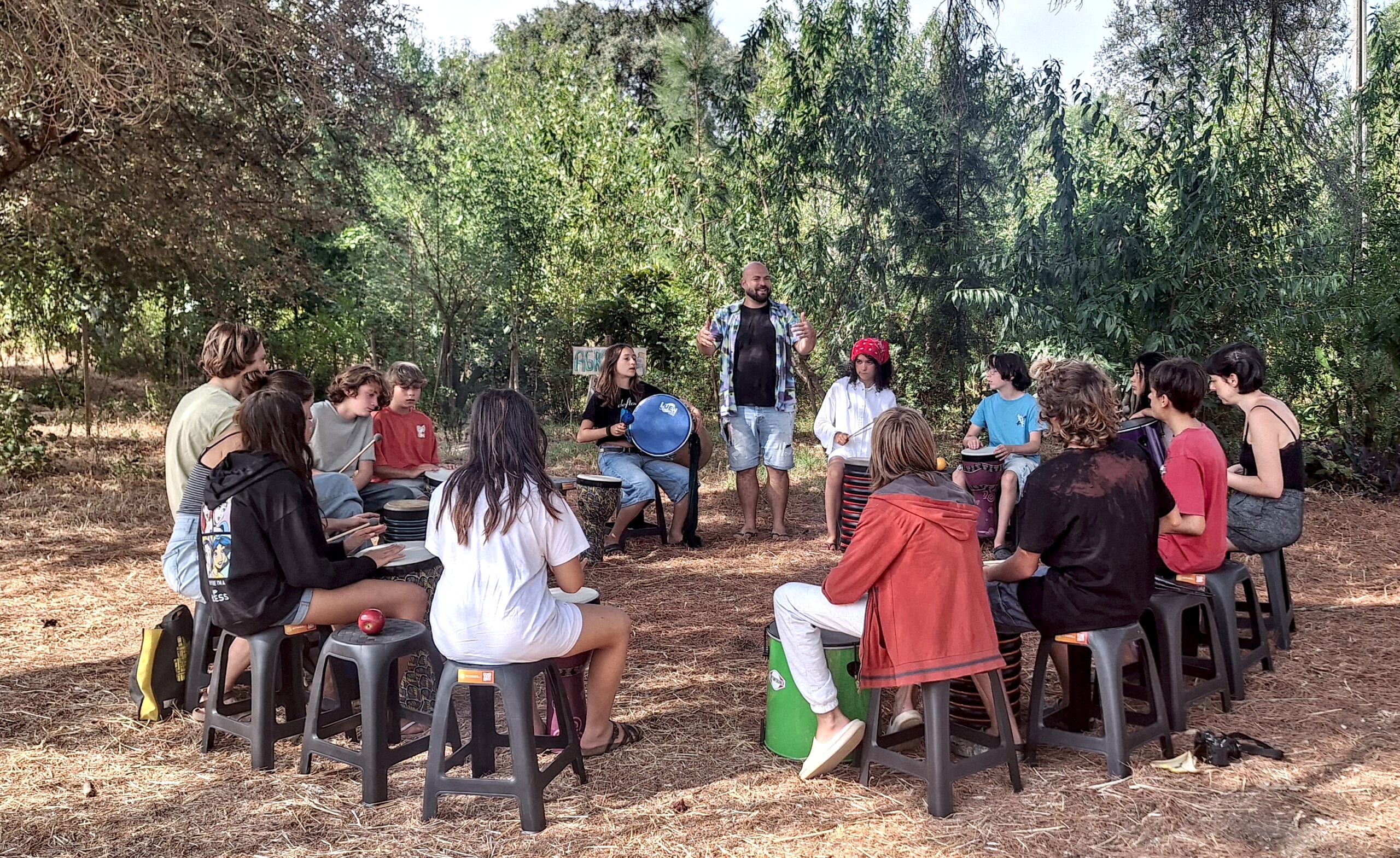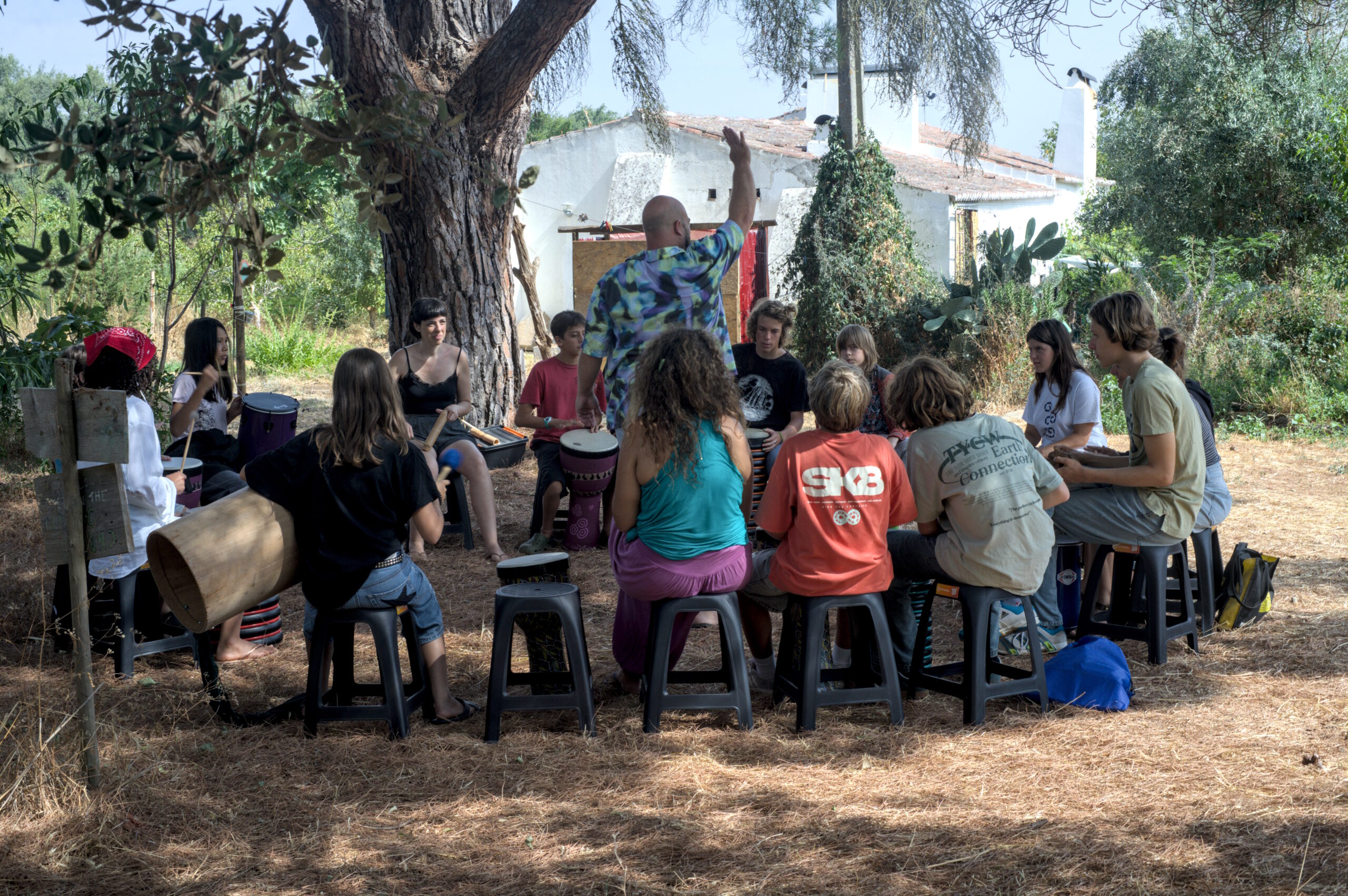 PERCUSSÃO EM CÍRCULO (DRUM CIRCLE): uma experiência coletiva de ritmo e construção musical onde, através de instrumentos de percussão variados e alguns desafios simples, exploramos progressivamente a identidade rítmica do grupo, descobrindo a magia e alegria da conexão humana. Não é necessário qualquer conhecimento musical, a qualidade da música criada não depende da capacidade instrumental de cada um, mas da qualidade da ligação que será criada pelo grupo.