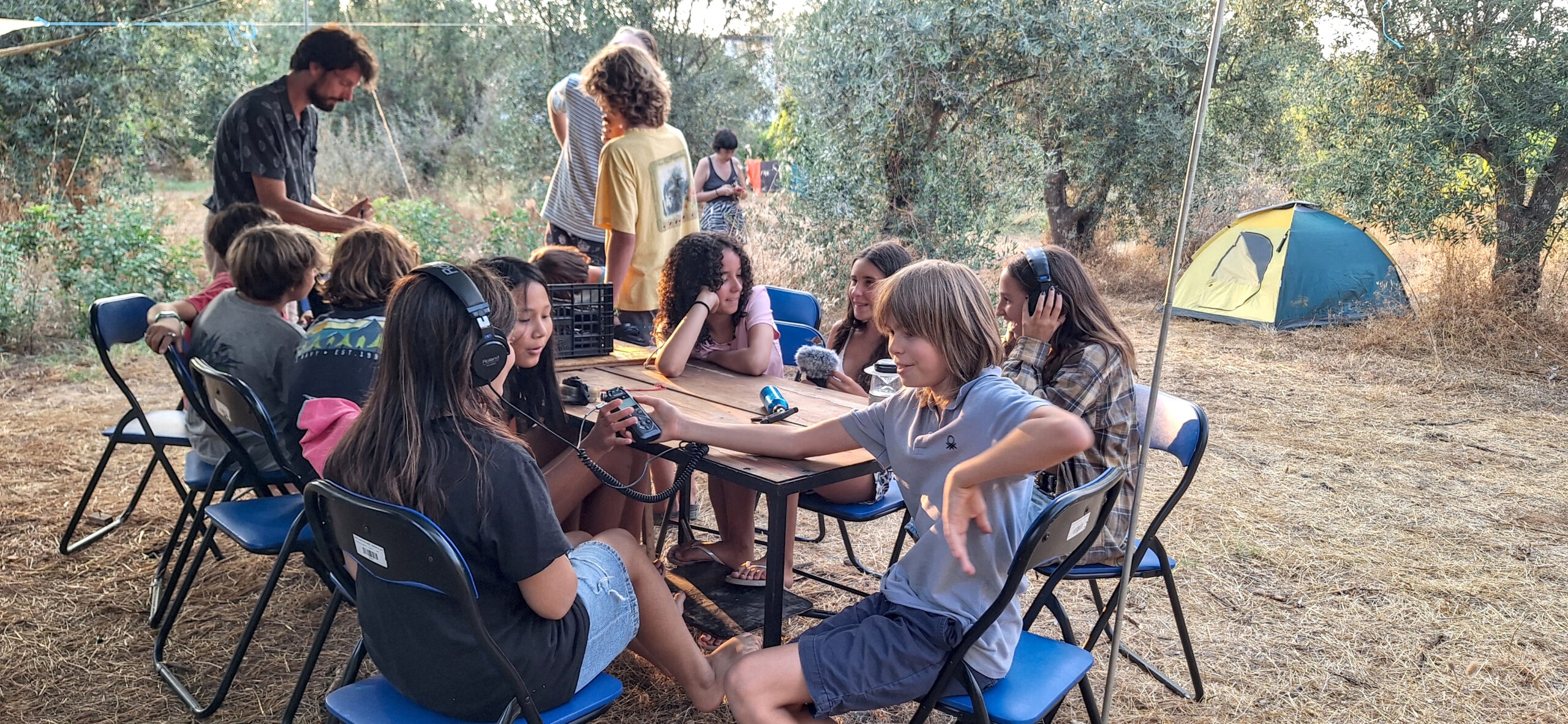 ESCUTA ACTIVA E GRAVAÇÃO DE SOM: através de exercícios guiados utilizando elementos naturais: pedras; folhas; sementes; água; as nossas vozes e corpos; etc., vamos explorar e criar ambientes sonoros, descobrindo como materiais comuns se transformam em ricas fontes sonoras. Usando uma variedade de microfones para captar estes sons de formas única, aprenderemos técnicas criativas de gravação que transformam momentos simples em material sonoro cativante. Durante a nossa exploração, os objetos do dia-a-dia ganham vida ao descobrirmos o seu potencial musical escondido, transformando estas descobertas acústicas em poderosas ferramentas artísticas.