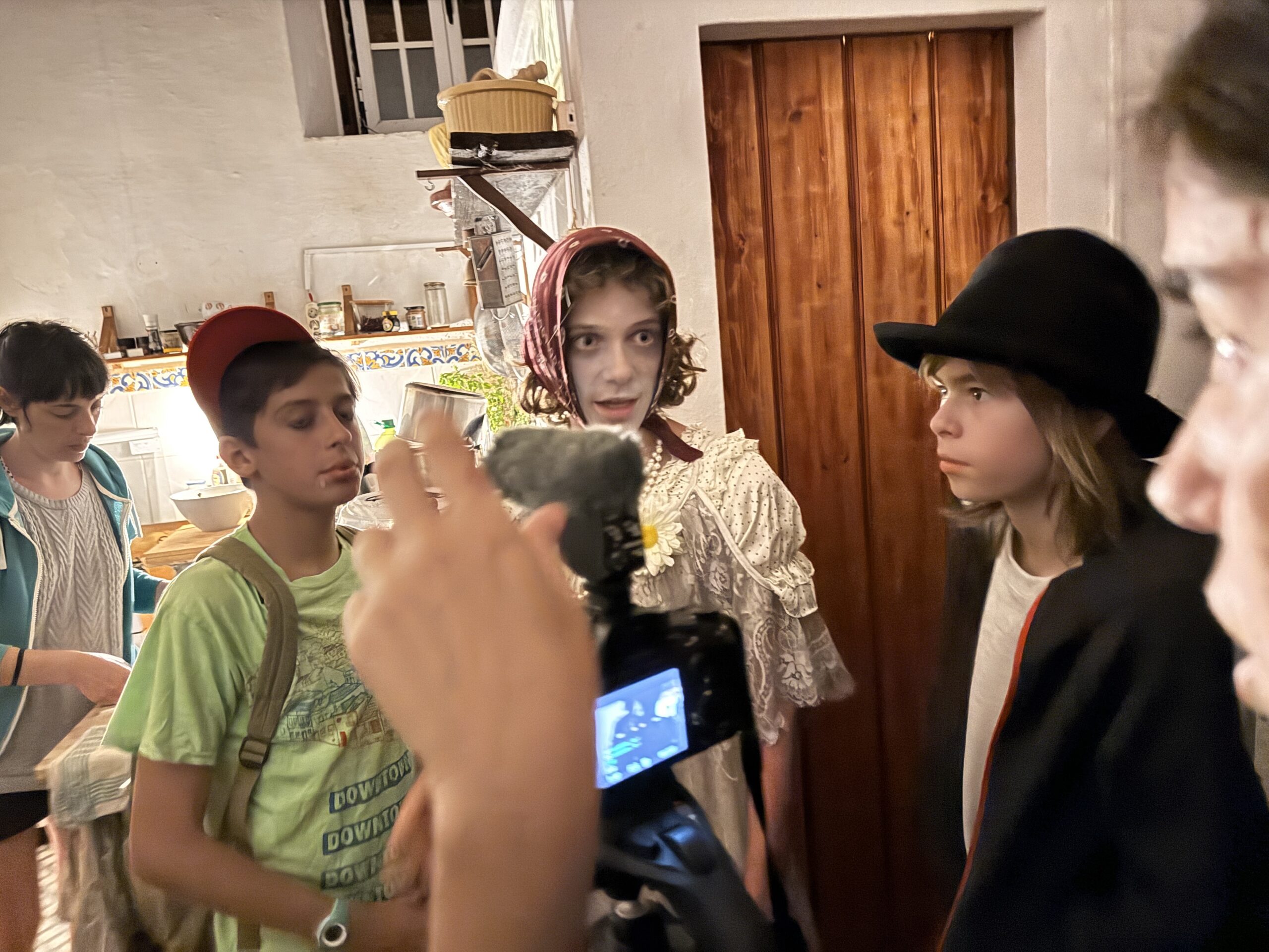 CONSTRUÇÃO DE ADEREÇOS E CENÁRIOS : Iremos utilizar barro, papel machê, cartão, material reciclado, aguarelas e acrílicos para construir adereços e cenários que podem servir para as curtas-metragens que vamos fazer. Além disso, vamos experimentar exemplos de maquilhagem e pintura corporal. Queremos enfatizar uma abordagem lúdica, onde o mais importante não é o resultado final, mas sim o processo criativo.